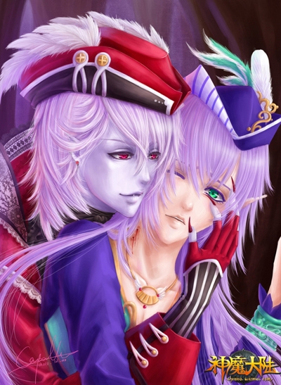 《神魔大陆》玩家手绘-血魔与诗人魅惑的爱